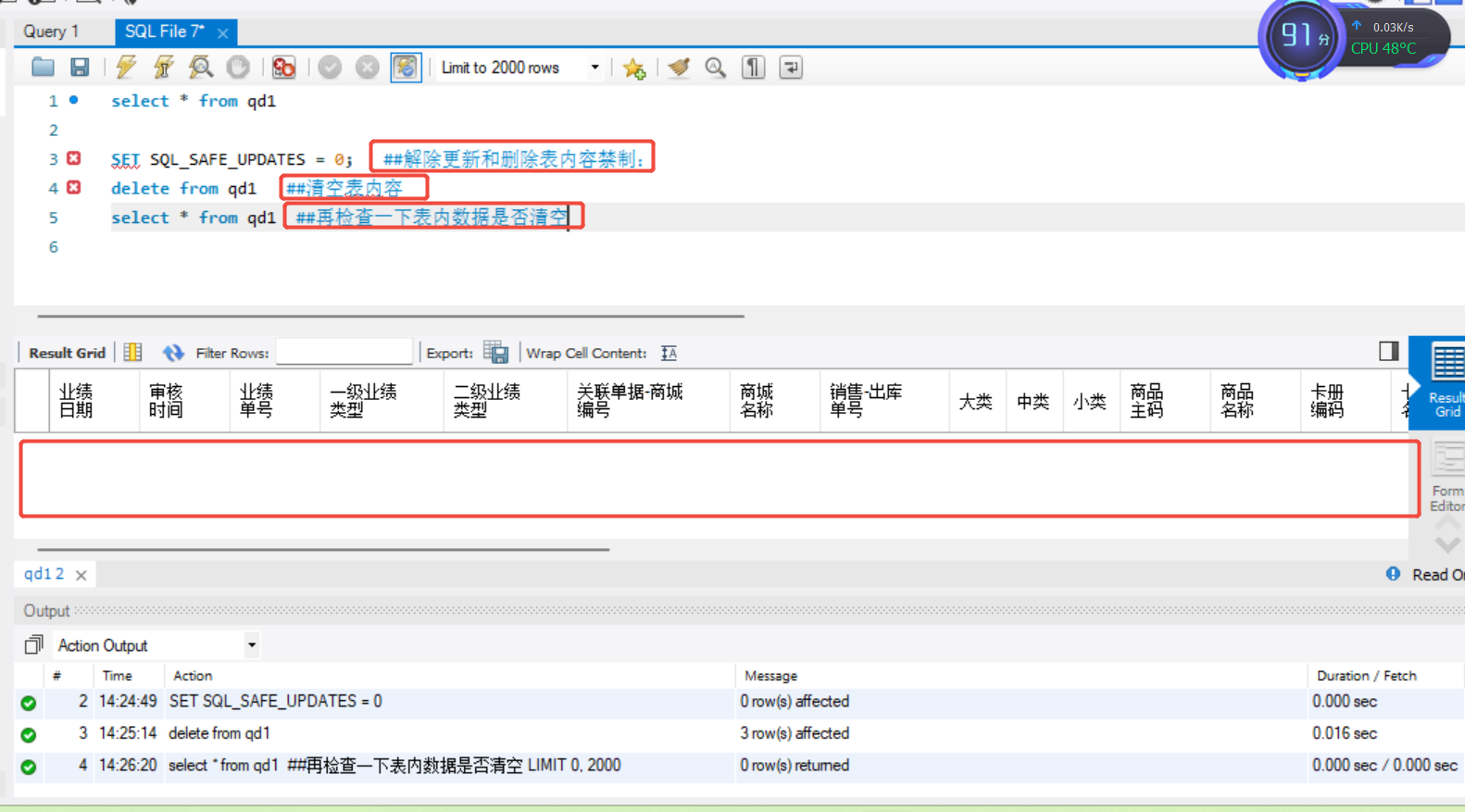 delete from qd1 ##清空表内容
