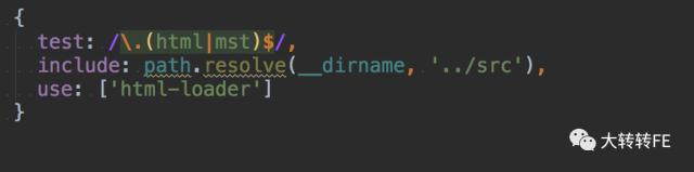 项目模板默认采用 Mustache,在 Webpack 的支持下,模板内容被单独放在一个文件中,并以 .mst 作为自定义后缀,文件内容依然是 HTML 格式,只是根标签为 <template>。Webpack 中选用 html-loader 对其进行解析,规则如下: