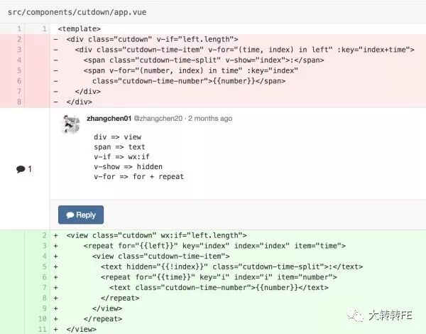 具体如何重写,可参考我们之前的像 Vue 一样写微信小程序-深入研究 wepy 框架。虽然 wepy 框架尝试从语法层面尽可能做到与 vue 技术栈的 web 项目同构,但是两端特性 API 兼容依旧是个棘手问题,而且毕竟两者的语法糖和生命周期函数都不一样。这里还有不少人工成本及学习与适应的过程,贴一个例子: