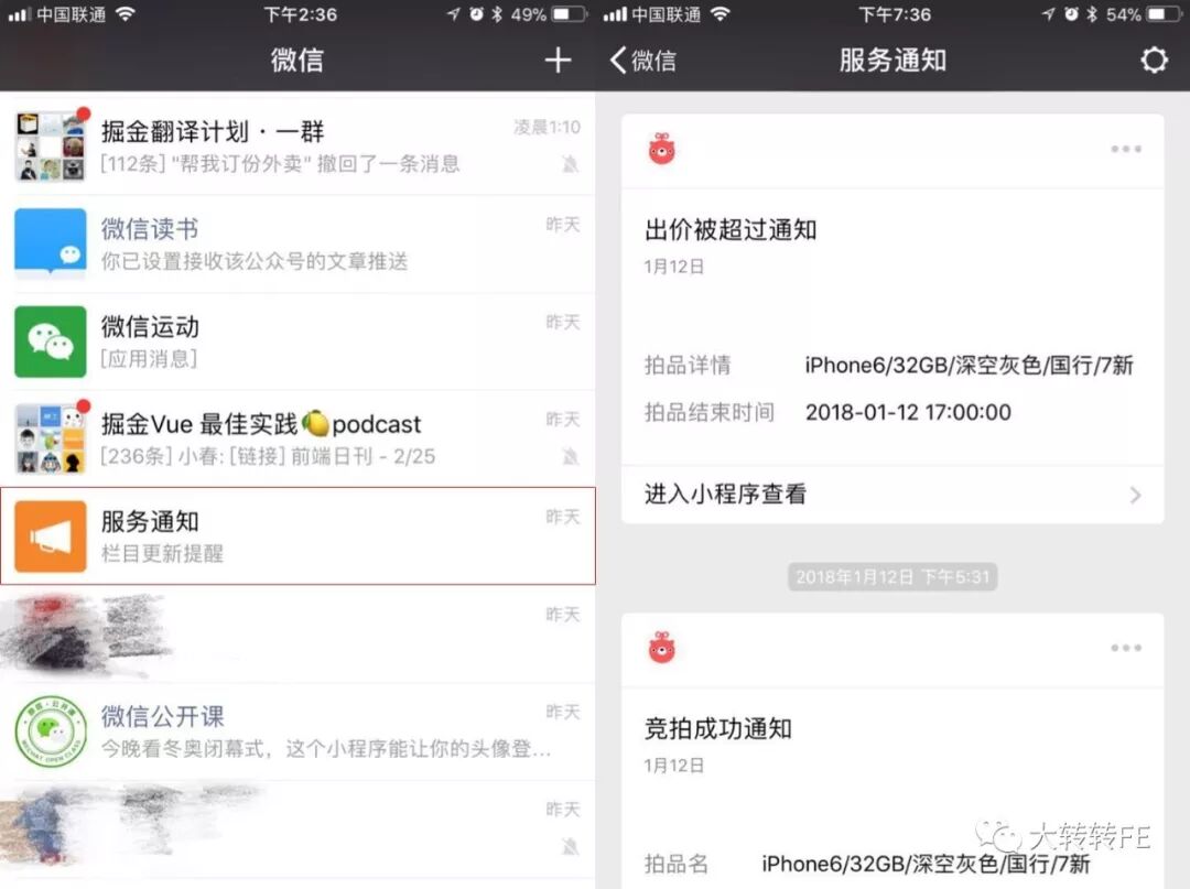 最大的坑:不支持服务通知