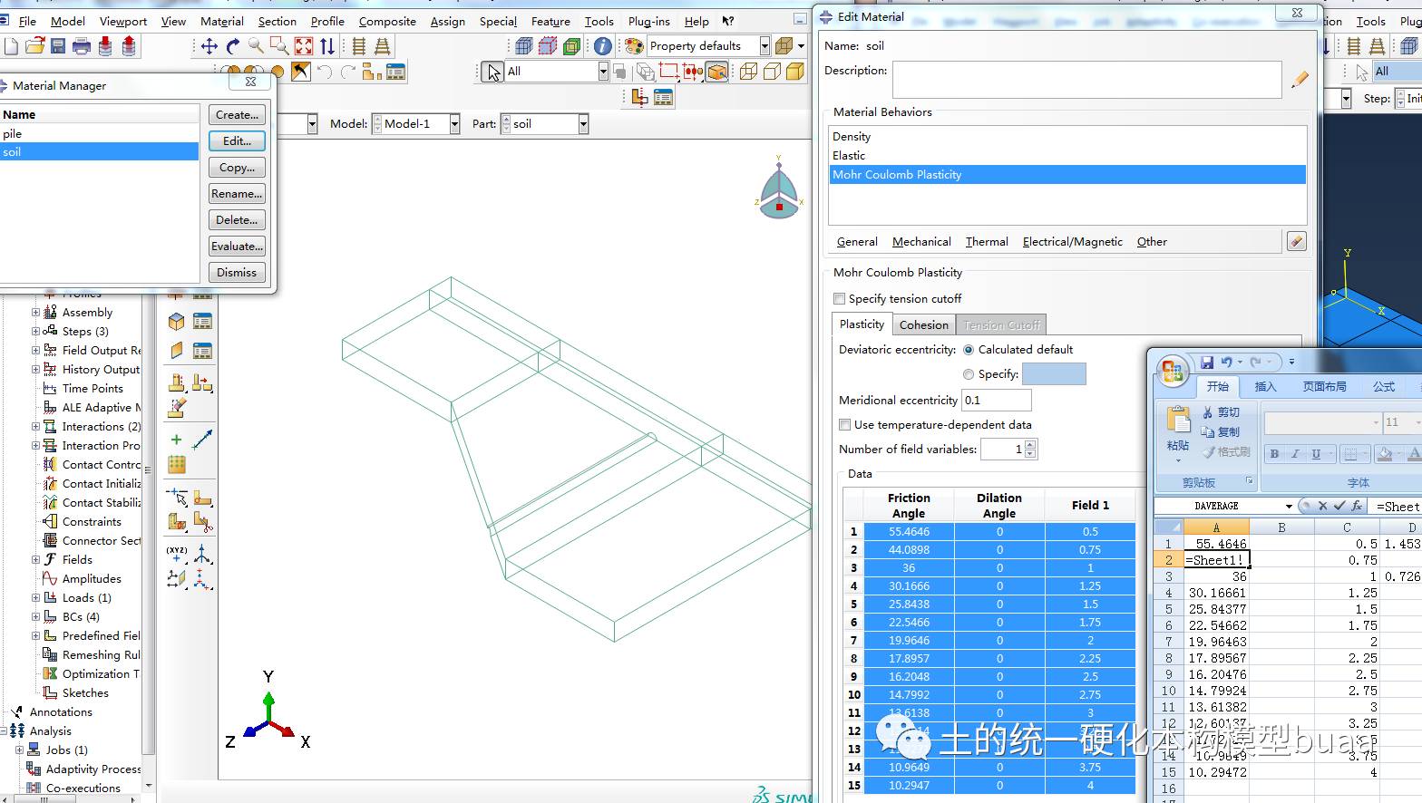 其中第三行f=36度是土的真实内摩察角,C列为强度折减系数Fr,一般先取较小的Fr(Fr<1即放大了强度),在后续计算中线性增加场变量Fr,数值不收敛后会终止计算。