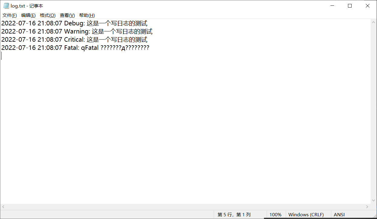 qCritical() << u8"这是一个写日志的测试"; // 严重的错误提示