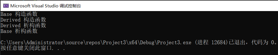 Derived() { std::cout << "Derived 构造函数\n"; }