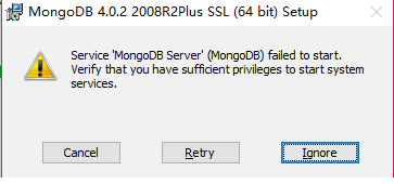 今天安装MongoDB,最后一步有个弹窗,告诉我权限不够,无法启动服务。