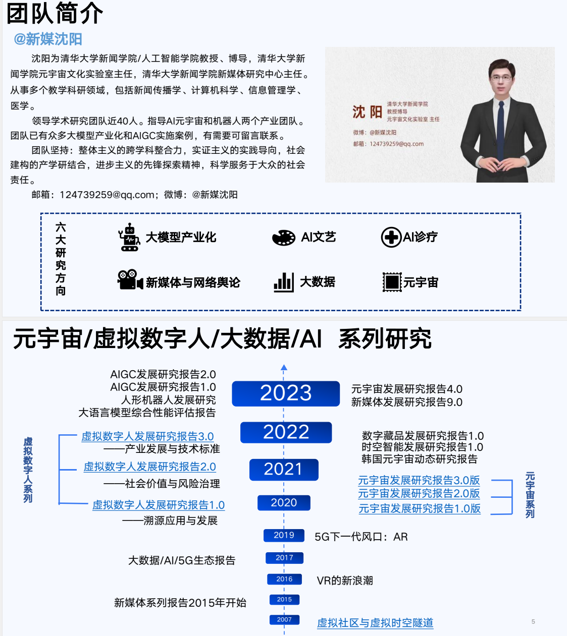 这几天清华大学沈阳教授团队又发布了《AIGC发展研究报告3.0》,用186页内容说透AI生成内容的现在与未来。从哲学思辨到产业落地,从写小说、做音乐到造机器人,这份报告信息量爆炸。