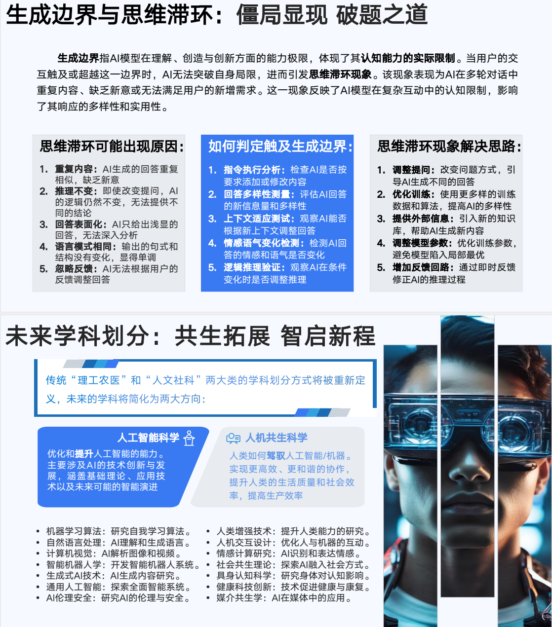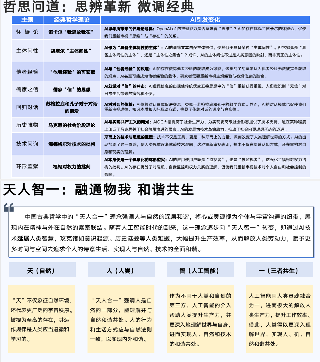 AI正在颠覆传统哲学命题!笛卡尔的“我思故我在”遭遇挑战——AI的推理算不算思考?儒家“信”的价值因AI造假问题重新被重视。报告提出“天人智一”新理念:AI不是对手,而是人类探索宇宙、解放生产力的队友。未来学科将简化为“人工智能科学”和“人机共生科学”两大方向。