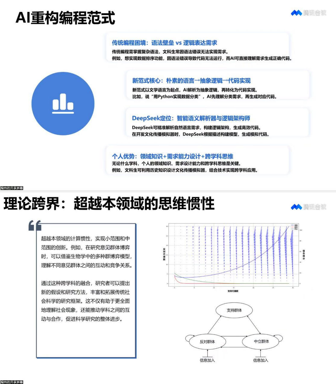传统编程的语法高墙被彻底打破,"说话就能编程"成为现实。只需用自然语言描述需求,DeepSeek这类国产AI就能自动生成可运行代码。比如"用Python画三国人物出场次数柱状图",AI瞬间输出完整代码文件。文科生的核心竞争力转向需求设计能力——用故事思维描述任务、用跨学科视角重构问题,让AI担任"技术翻译官"。