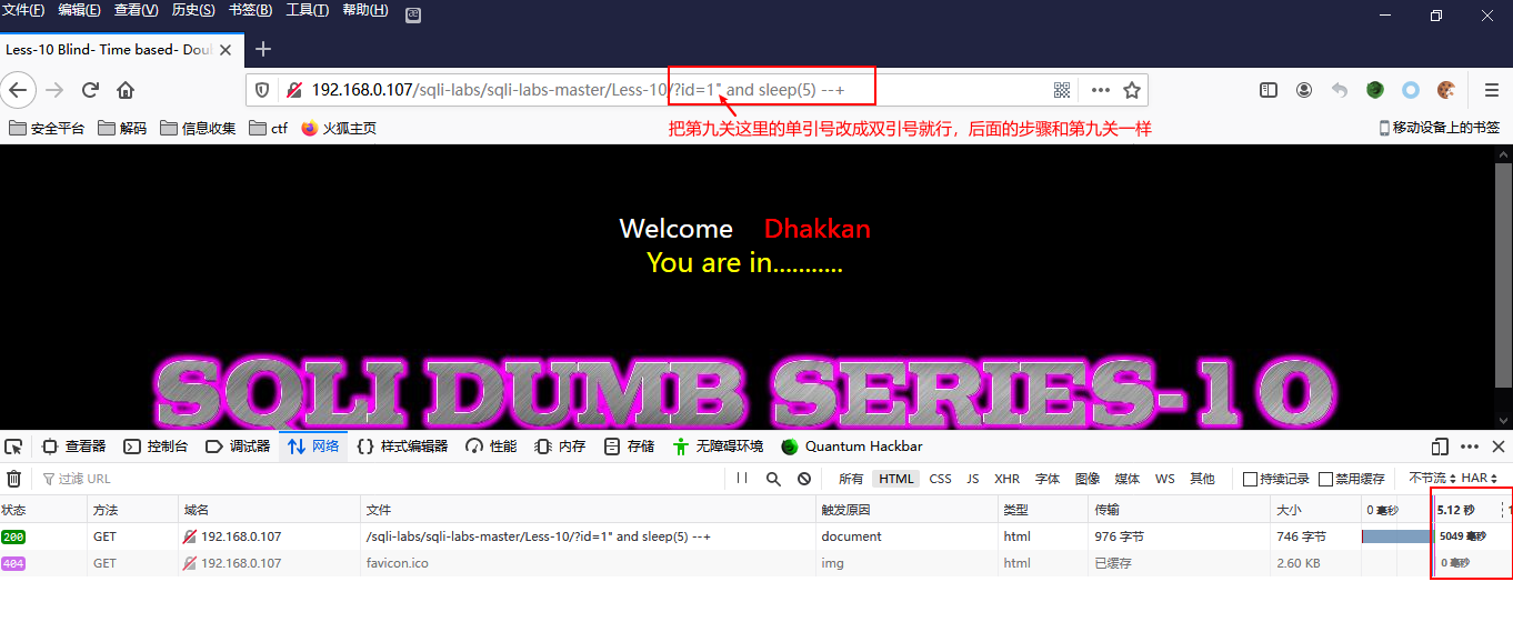 从题目来看,应该是get型的双引号的时间盲注,直接把第九关的单引号改成双引号就行,这里我就不说明了