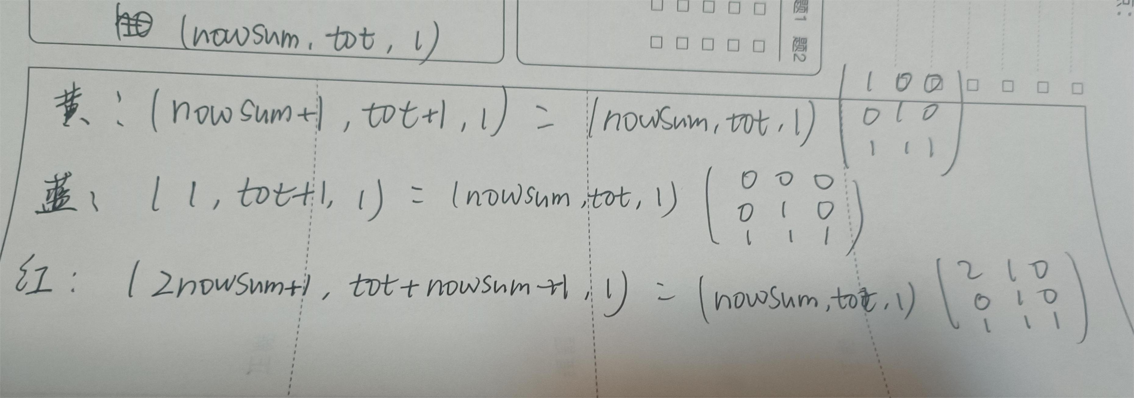 两题都基本上就是转移矩阵求出来正常建线段树, pushup就是直接矩阵乘