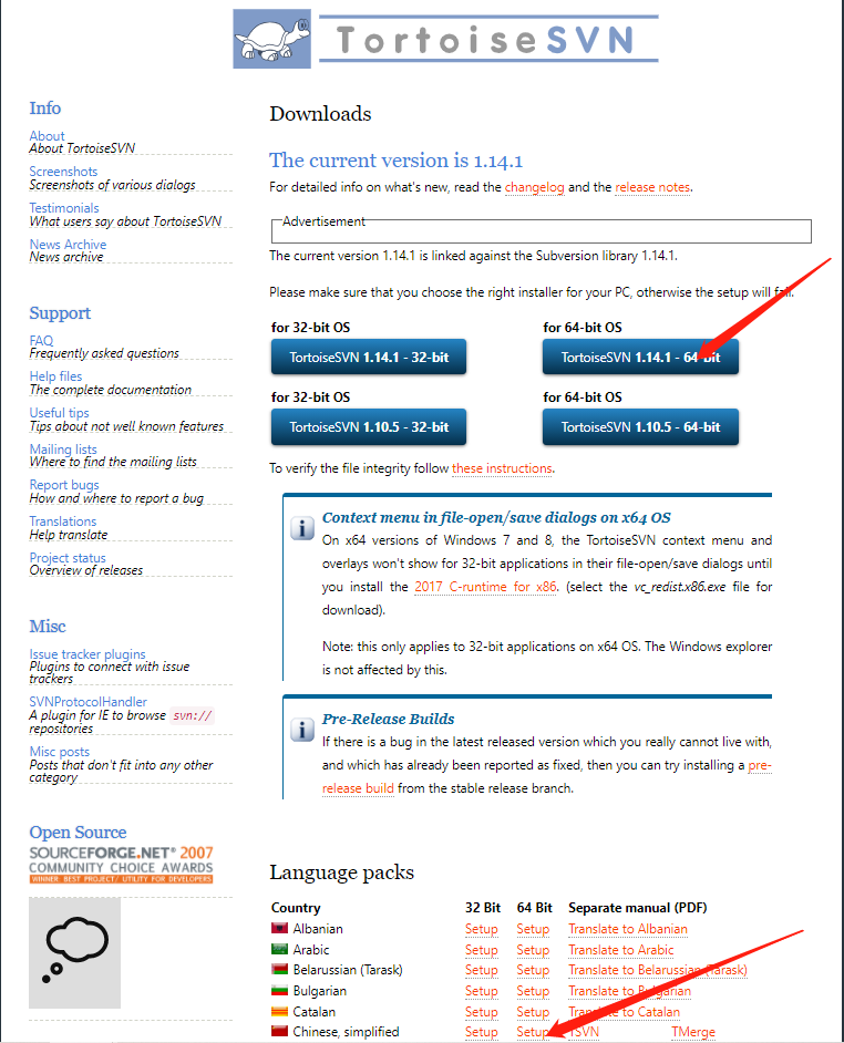 需要下载svn安装包和语言包