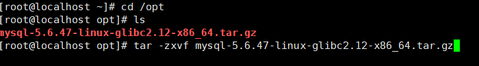 将MySQL安装包移入/opt并对其进行解压