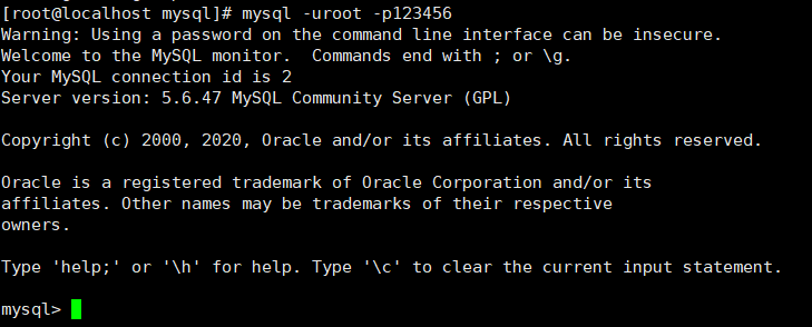mysql -uroot -p123456 //mysql -uroot -p+密码