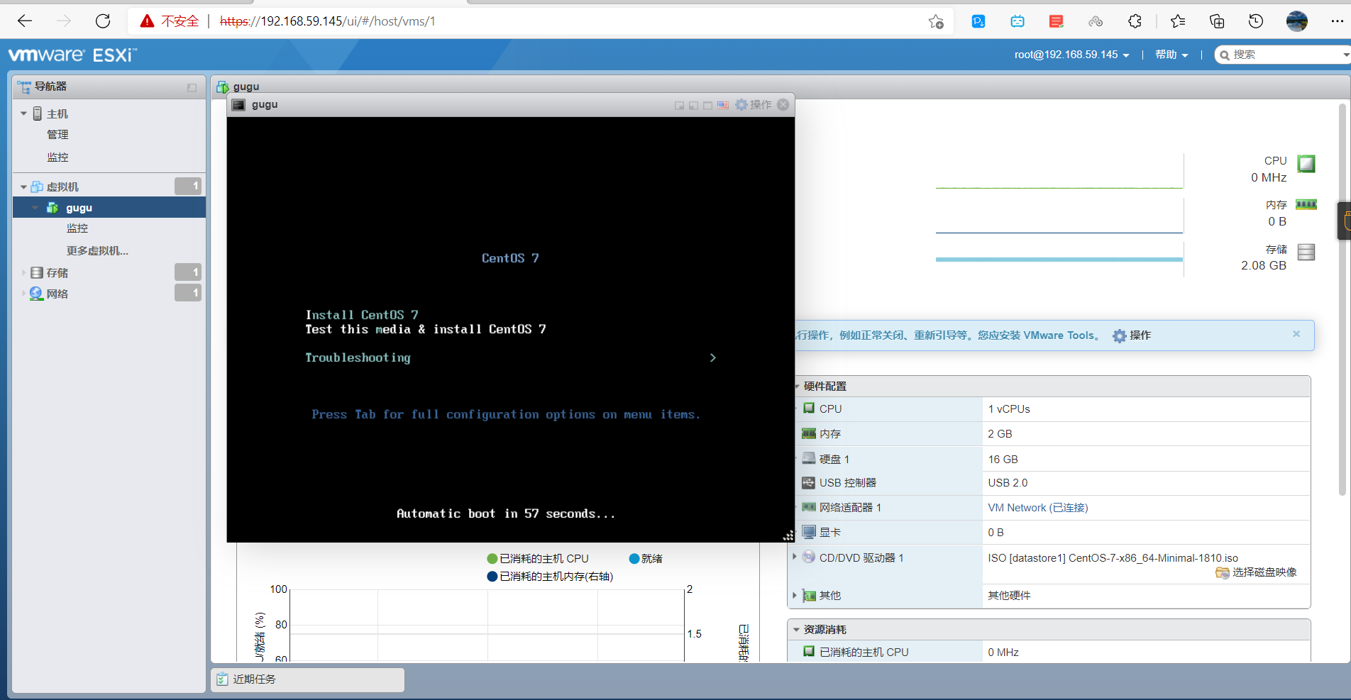 网页输入虚拟机ip——输入root和密码