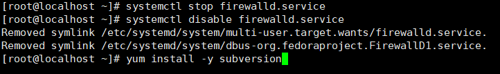systemctl stop firewalld.servic//关闭防火墙 systemctl disable firewalld.service//永久关闭防火墙 yum install -y subversion//下载SVN