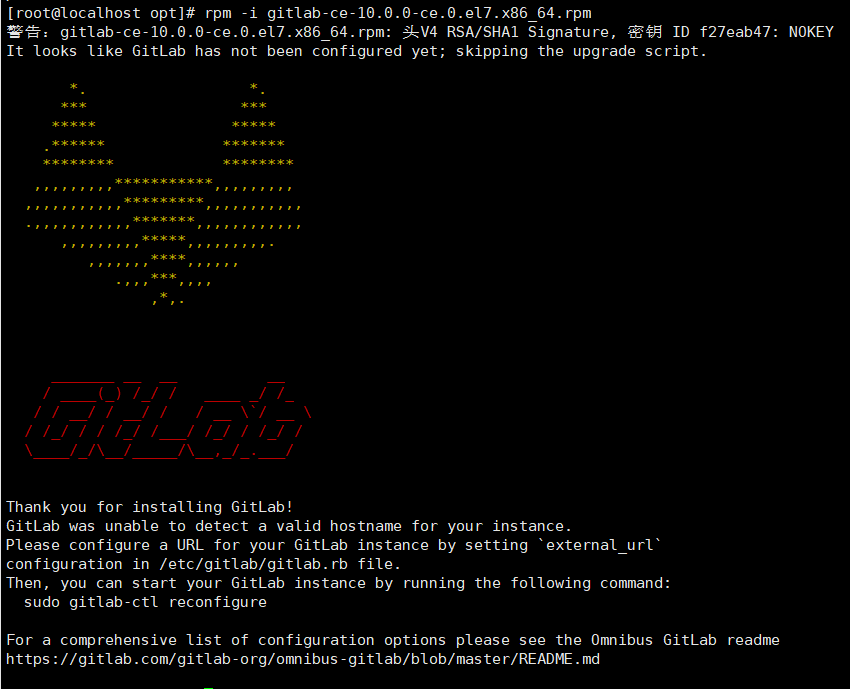 rpm -i gitlab-ce-10.0.0-ce.0.el7.x86_64.rpm //安装gitlab