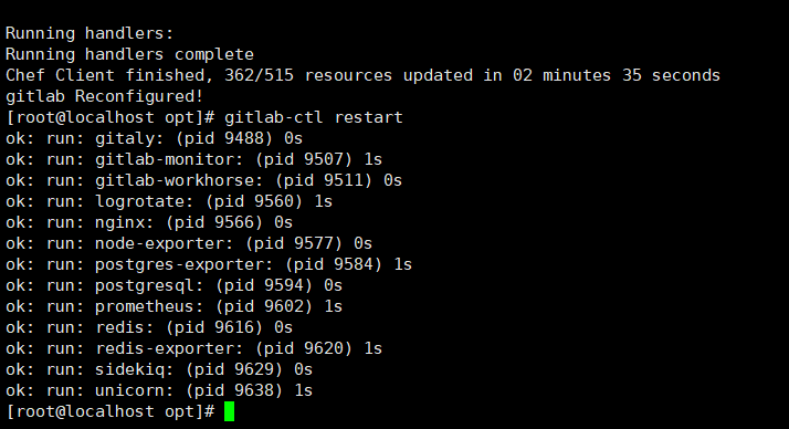 gitlab-ctl reconfigure //重载gitlab gitlab-ctl restart //启动
