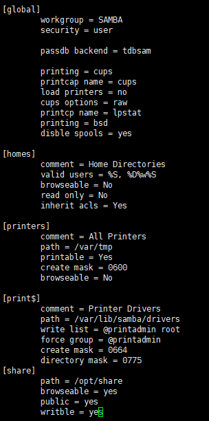 2.配置Samba的配置文件/etc/samba/smb.conf