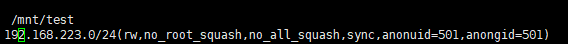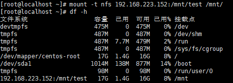 mount -t nfs 192.168.223.10:/mnt/test /mnt/