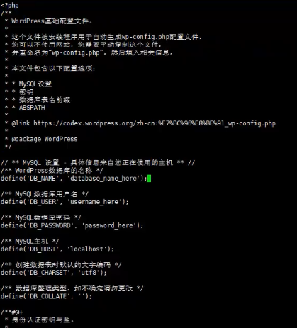 8.将在/home/wwwroot/default/目录下的模板配置文件,将该模板复制一份并改名为wp-config.php,然后编辑该文件