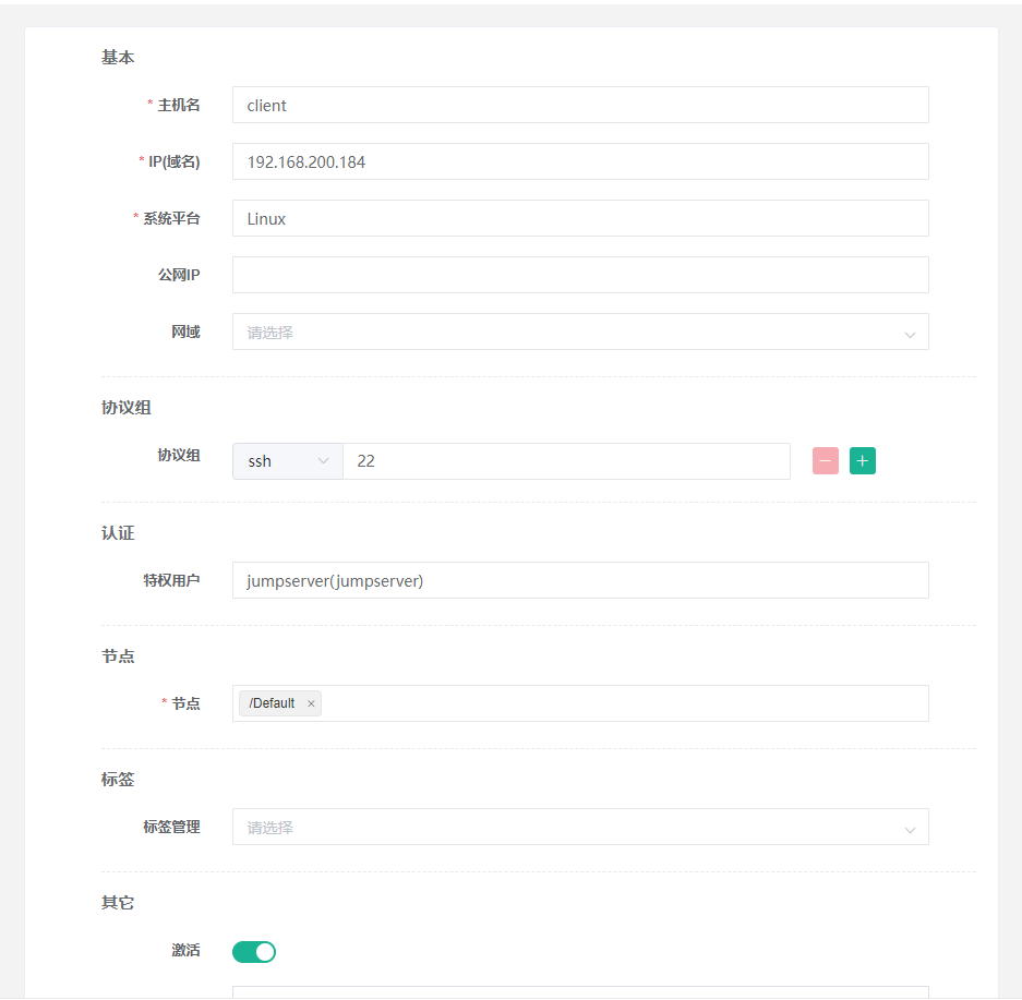 [root@localhost ~]# ssh-keygen -f jumpserver #生成密匙 Generating public/private rsa key pair. Enter passphrase (empty for no passphrase): Enter same passphrase again: Your identification has been saved in jumpserver. Your public key has been saved in jumpserver.pub. The key fingerprint is: SHA256:yAkBJTs2DMJBzRp10xfU+P4QTwG1B2UcUkxhvmTSdBs root@localhost.localdomain The key's randomart image is: +---[RSA 2048]----+ |=oB+oo. .o+.o+*E+| |.= =.... o . .Xo+| | O . . . o.B | | o o o o o .= .| | + S . + . | | o . | | o | | . | | | +----[SHA256]-----+