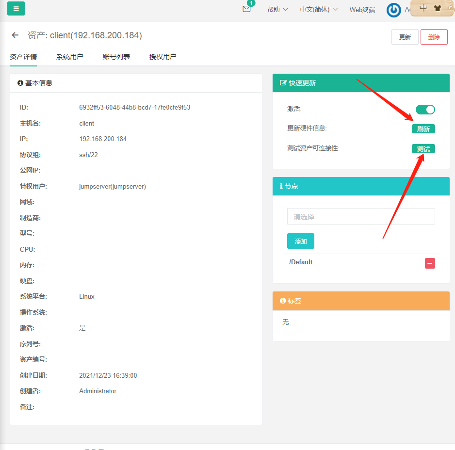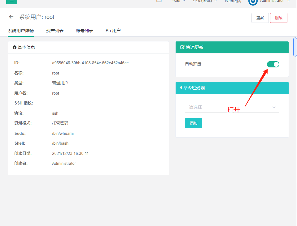 [root@localhost ~]# echo 123456 | passwd --stdin jumpserver 更改用户 jumpserver 的密码 。 passwd:所有的身份验证令牌已经成功更新。
