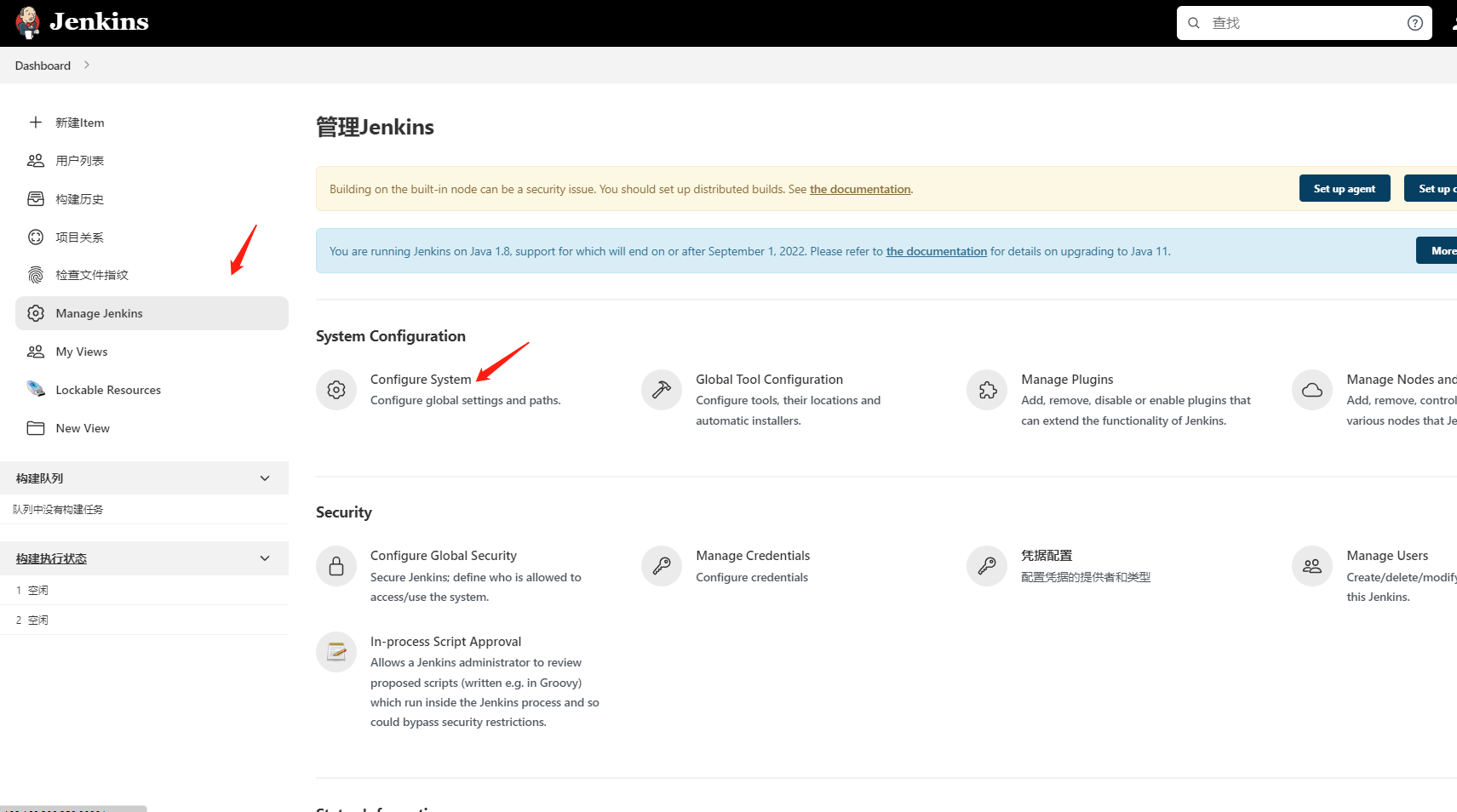 进入“Manage Jenkins”,然后进入“Configure System”,填写“Jenkins location”