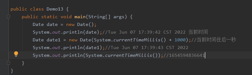 我们用long类型的变量来表示时间,从基准时间往前几亿年前,往后几亿年都能表示。如果想获得现在时刻的“时刻数值”,可以使用: