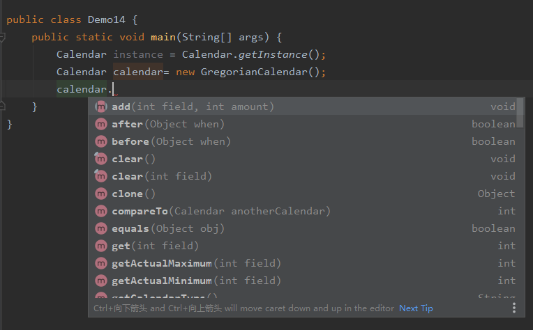 GregorianCalendar是Calendar的一个具体子类,提供了世界上大多数国家/地区使用的标准日历系统。所以可以通过 new GregorianCalendar();父类引用来调用方法