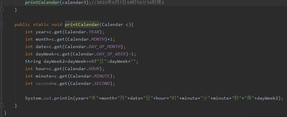 其上大多数方法都用到了int类型的参数field,该参数需要接收Calendar类中指定的常量值,例如Calendar.YEAR用于表示年份