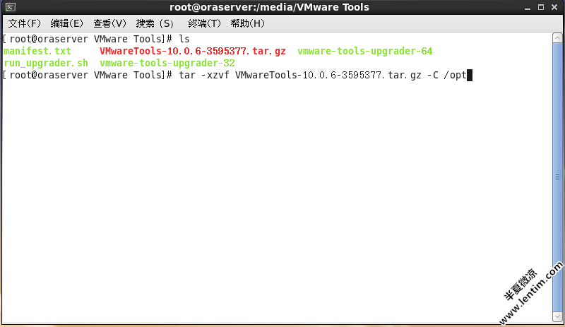 [root@oraserver VMware Tools]# tar -xzvf VMwareTools-10.0.6-3595377.tar.gz -C /opt