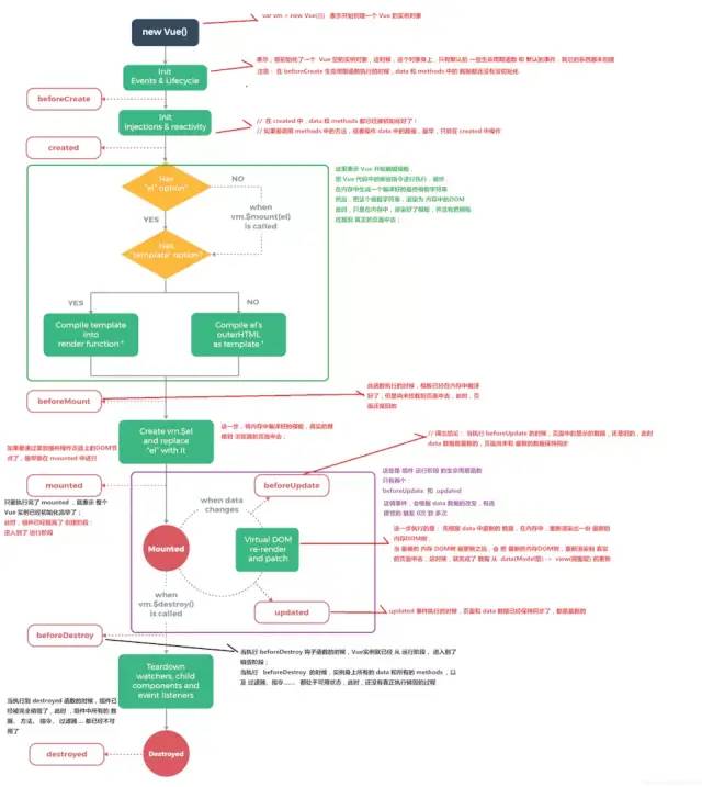 在钩子函数 mounted 被调用前,Vue 已经将编译好的模板挂载到页面上,所以在 mounted 中可以访问操作 DOM。vue 具体的生命周期示意图可以参见如下,理解了整个生命周期各个阶段的操作,关于生命周期相关的面试题就难不倒你了。
