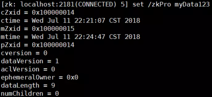 2、创建一个新的 znode ,使用 create /zkPro myData