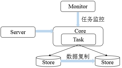 Zookeeper主要负责进行分布式协调工作,在具体的实现上,根据功能将数据复制组件划分为三个模块:Core(实现数据复制核心逻辑,将数据复制封装成管道,并抽象出生产者和消费者概念)、Server(启动和停止复制任务)、Monitor(监控任务的运行状态,若数据复制期间发生异常或出现故障则进行告警)