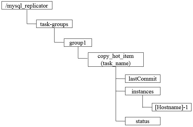 - 任务创建,Core进程启动时,首先向/mysql_replicator/tasks节点注册任务,如创建一个子节点/mysql_replicator/tasks/copy_hot/item,若注册过程中发现该子节点已经存在,说明已经有其他Task机器注册了该任务,因此其自身不需要再创建该节点。