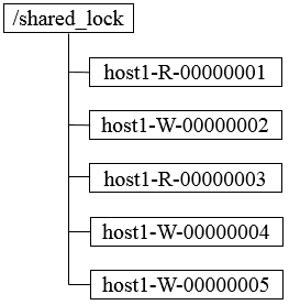 1. host1首先进行读操作,完成后将节点/shared_lock/host1-R-00000001删除。