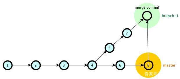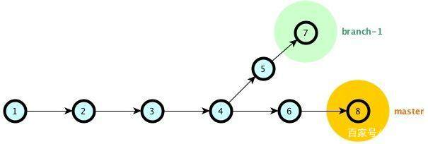 Merge与rebase操作的处理方式完全不同,实际上merge比rebase更简单。假设,我们想要想在分支branch-1添加master中的变化(6,8)变化,不用rebase提交历史变为7结束。这种情况下使用merge,而在我们的日常实践中也是merge更常用些。