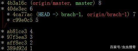 从图上,我们可以看到每一个commit的引用,引用最先指向的是1。通过遍历每个分支,我们可以看出最后的通常commit是4(然后分支出了branch-1)。
