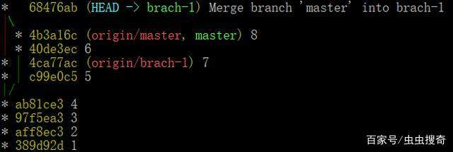 git log --pretty --graph --oneline --all # 首先我们用git log命令看下当前的提交历史 git checkout brach-1 # 切换到分支1 git rebase master # 以master为基础rebase
