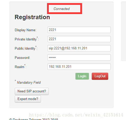 * 注册多个信令服务器;uri即注册用户的SIP地址,password为连接密