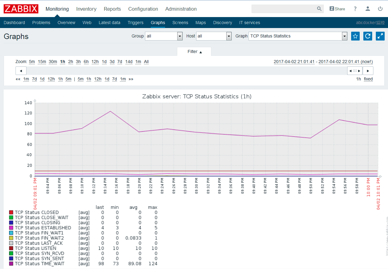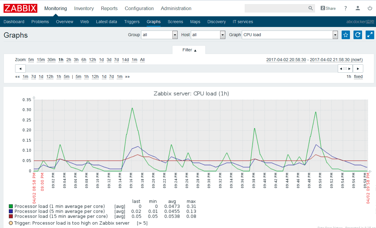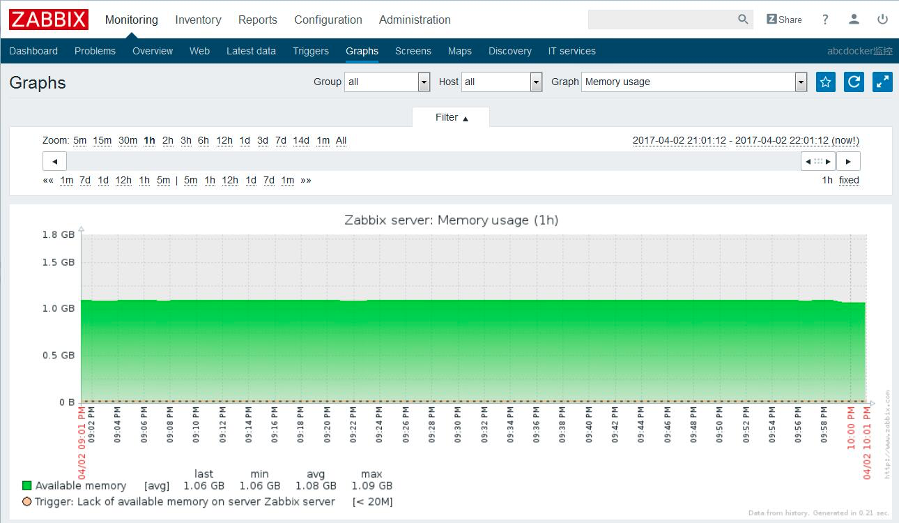 3.数据分析: 当我们事后需要复盘分析故障时,zabbix能给我们提供图形以及时间等相关信息,方面我们确定故障所在。