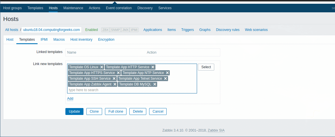 Step 3: Add host to Zabbix Server