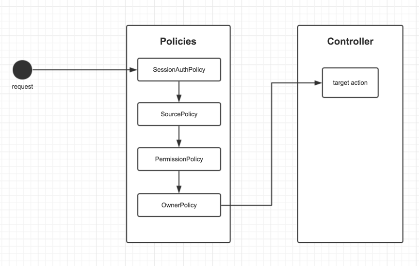 检测访问的资源是否存在,主要检测Source表的记录 - PermissionPolicy: