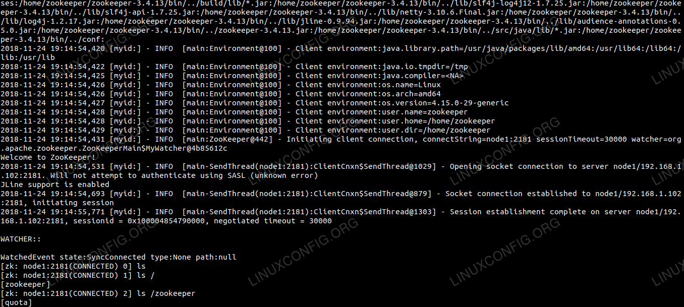 $ /home/zookeeper/zookeeper-3.4.13/bin/zkCli.sh -server `hostname -f`:2181