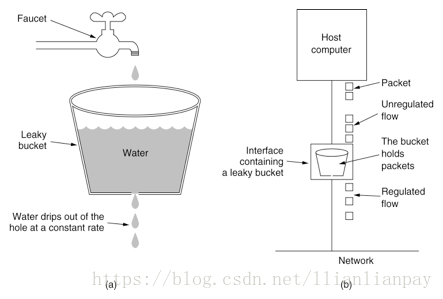 算法允许最长b个字节的突发,但从长期运行结果看,数据包的速率被限制成常量r。对于在流量限制外的数据包可以以不同的方式处理:(1)它们可以被丢弃;(2)它们可以排放在队列中以便当令牌桶中累积了足够多的令牌时再传输;(3)它们可以继续发送,但需要做特殊标记,网络过载的时候将这些特殊标记的包丢弃。