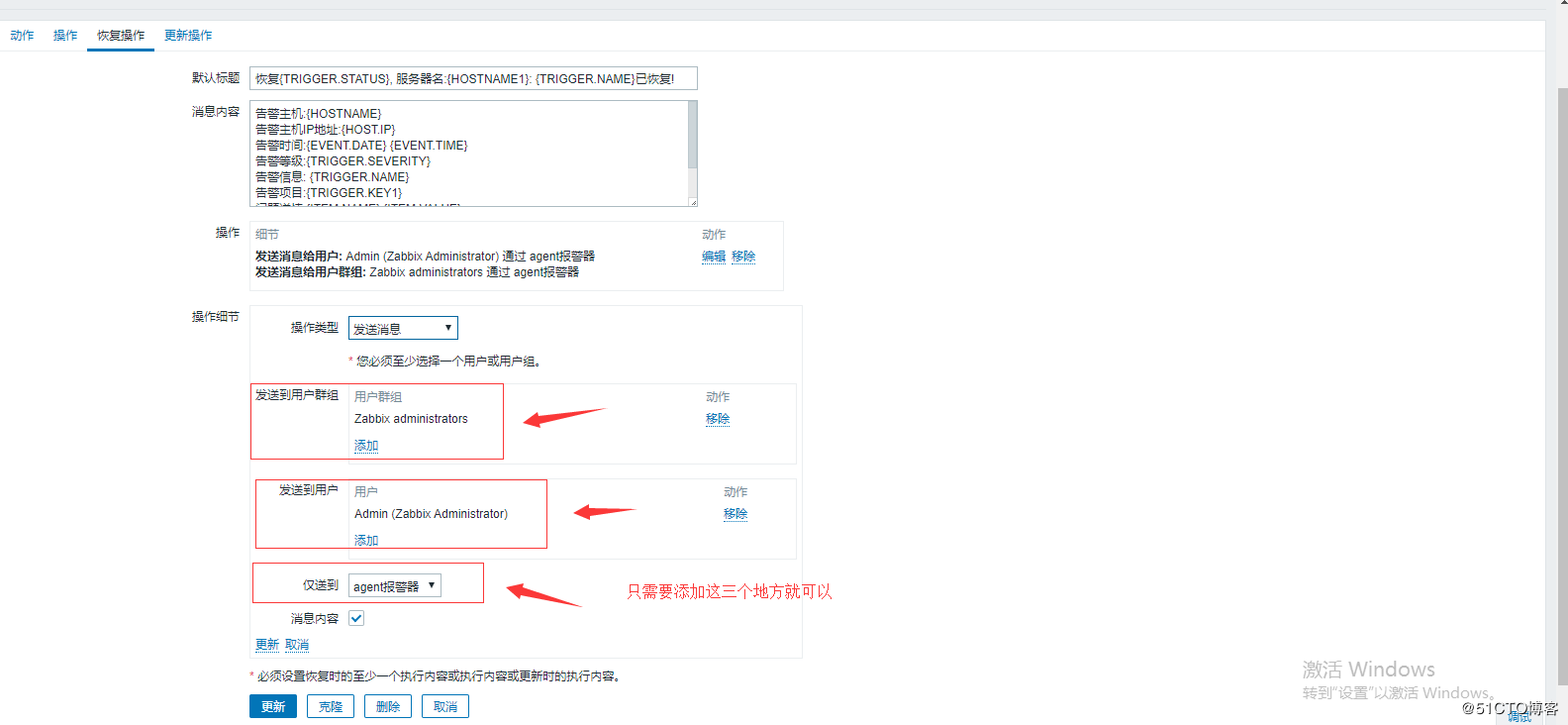 恢复{TRIGGER.STATUS}, 服务器名:{HOSTNAME1}: {TRIGGER.NAME}已恢复!