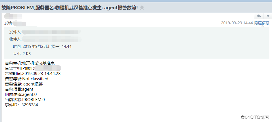 #!/bin/bash SMTP_server='smtp.163.com' # SMTP服务器 username='*@163.com' # 用户名 password='*****' # 密码 from_email_address='*@163.com' # 发件人Email地址 to_email_address="$1" # 收件人Email地址,zabbix传入的第一个参数 message_subject_utf8="$2" # 邮件标题,zabbix传入的第二个参数 message_body_utf8="$3" # 邮件内容,zabbix传入的第三个参数 # 转换邮件标题为GB2312,解决邮件标题含有中文,收到邮件显示乱码的问题。 message_subject_gb2312=`iconv -t GB2312 -f UTF-8 << EOF $message_subject_utf8 EOF` [ $? -eq 0 ] && message_subject="$message_subject_gb2312" || message_subject="$message_subject_utf8" # 转换邮件内容为GB2312 message_body_gb2312=`iconv -t GB2312 -f UTF-8 << EOF $message_body_utf8 EOF` [ $? -eq 0 ] && message_body="$message_body_gb2312" || message_body="$message_body_utf8" # 发送邮件 sendEmail='/usr/local/bin/sendEmail' $sendEmail -s "$SMTP_server" -xu "$username" -xp "$password" -f "$from_email_address" -t "$to_email_address" -u "$message_subject" -m "$message_body" -o message-content-type=text -o message-charset=gb2312