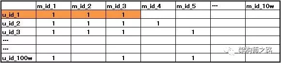 (1)画一个大表格,横坐标是所有的movie_id,纵坐标所有的user_id,交叉处代表这个用户喜爱这部电影