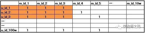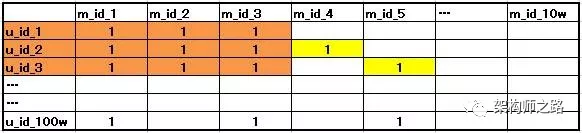 纵坐标,假设有100w个用户,所以纵坐标有100w个user_id,数据也来自数据库