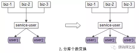(2)分库个数变换需求:服务不需要升级,只需要改寻库路由配置;