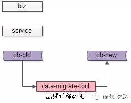 步骤二:研发一个数据迁移工具,进行数据迁移。这个数据迁移工具在本文中已经出现第三次了,把旧库中的数据转移到新库中来。